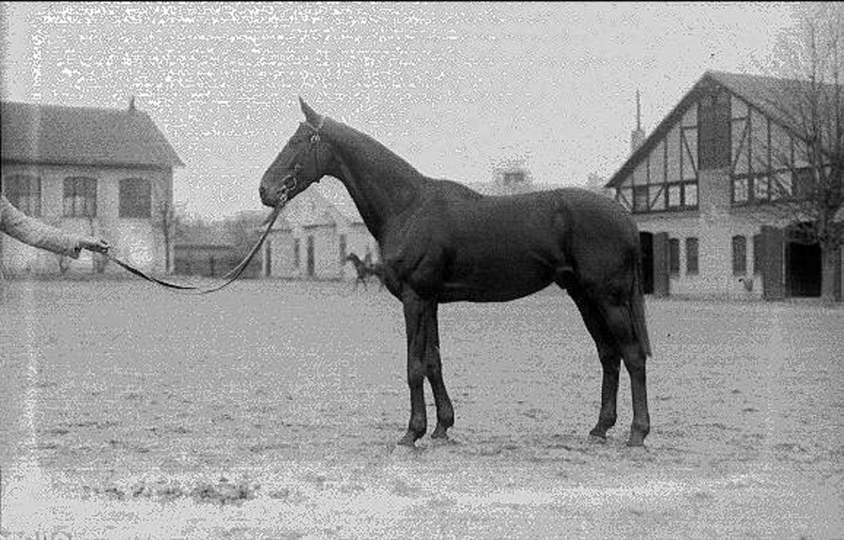 Officers tjänstehäst på kaserngården söder skvadronsstallarna.
