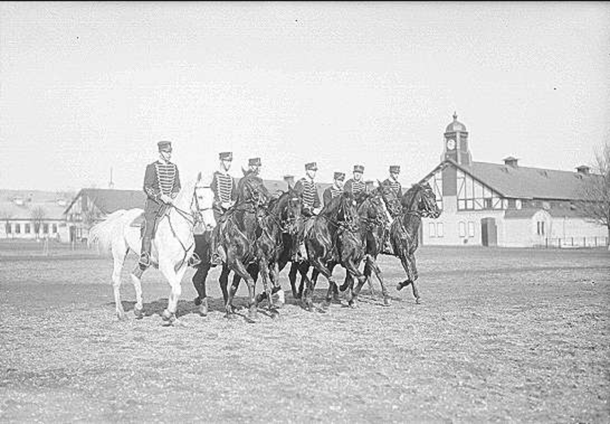 En skvadrons korpralskola. Skolchef löjtnant Gunnar Schildt. Avdelningsridning på östra kaserngården.