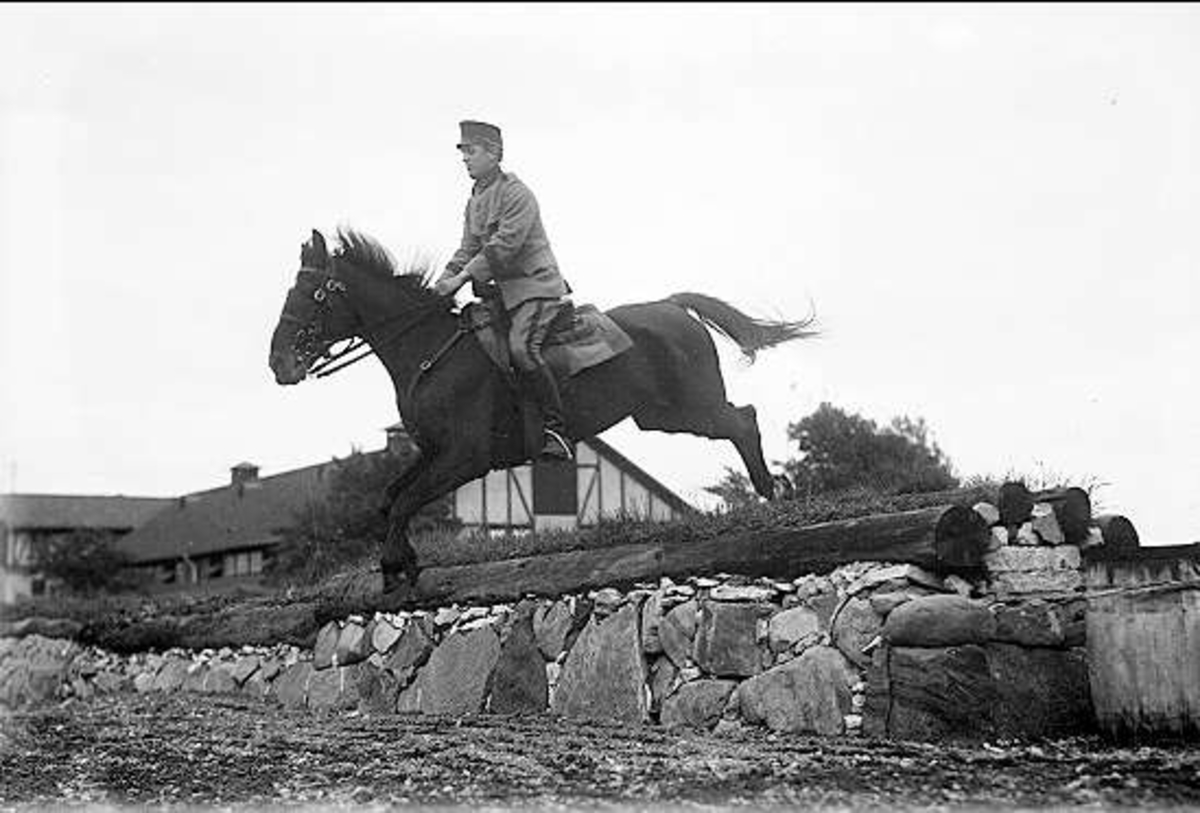 Träningshoppning på stenmuren på östra kaserngårdshalvan.