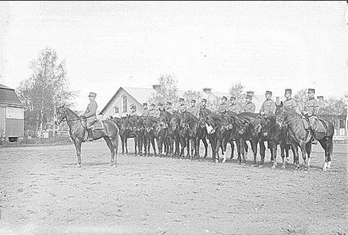 Avlämning på västra kaserngården före ridutbildning, antagligen furirskolan.