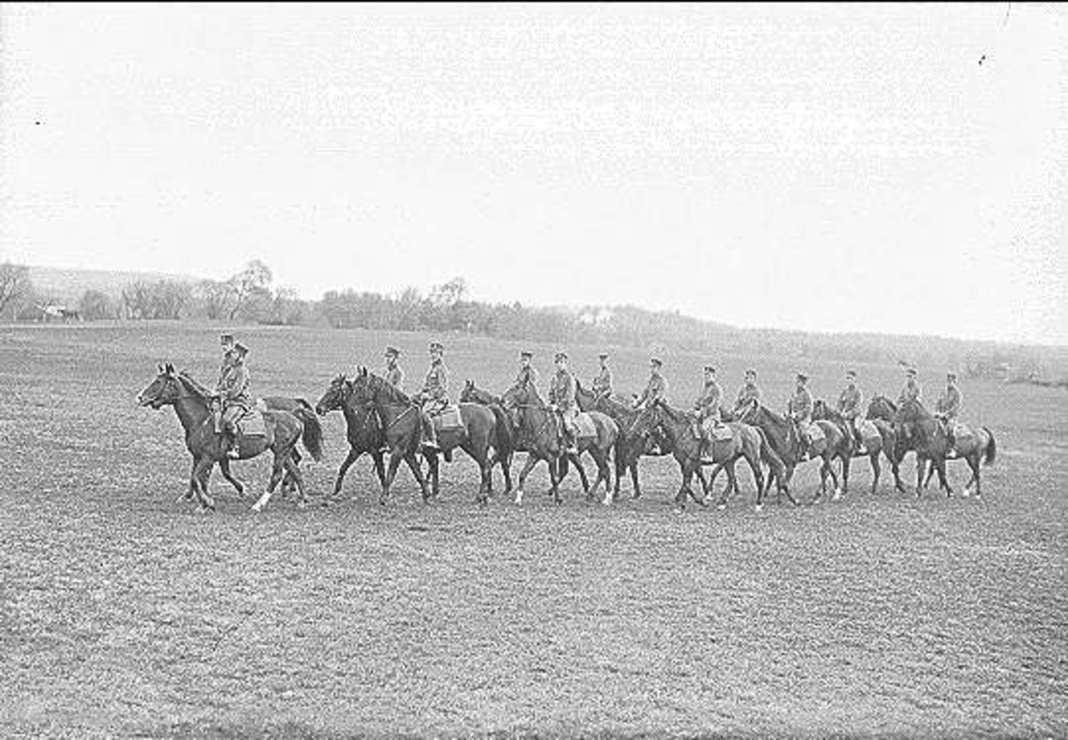 Avdelningsridning på fältet söder om kasern på väg mot Källedalsbäcken.