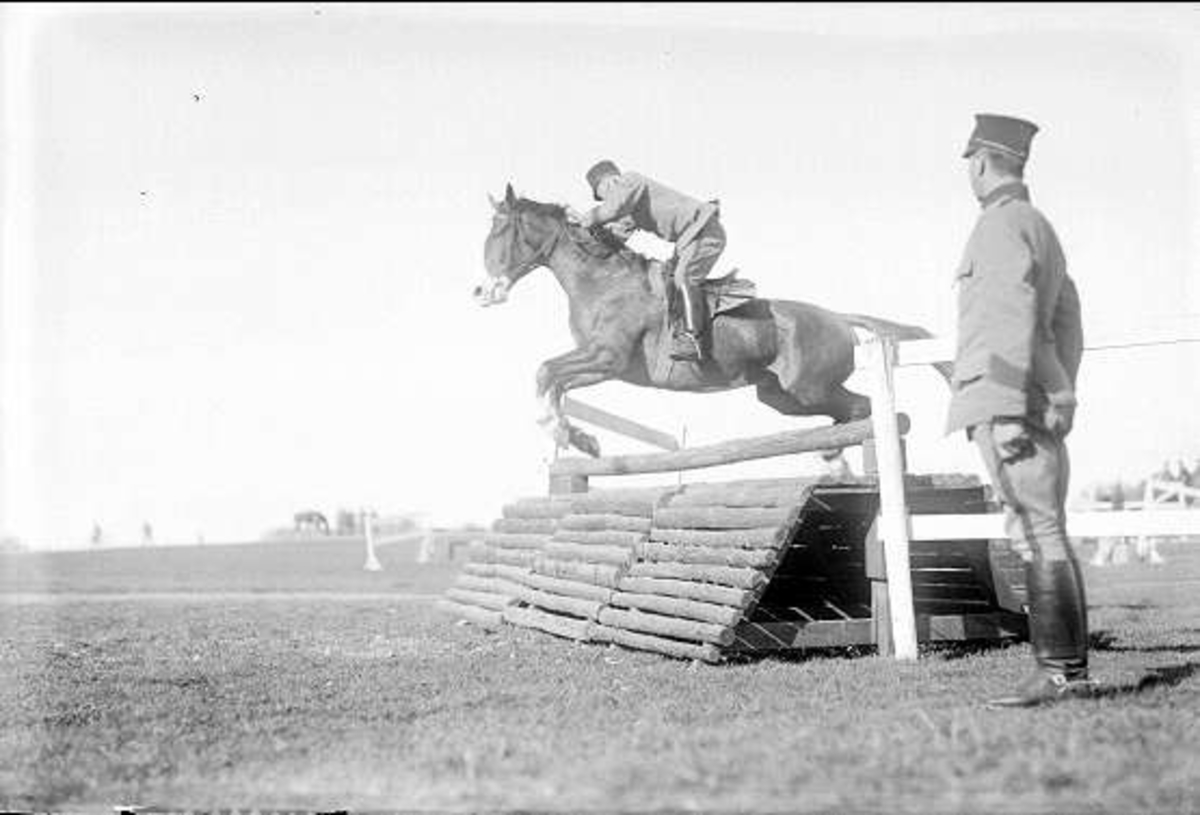 Utbildning i banhoppning med regementets underbefäl på södra fältet (Sandfältet).