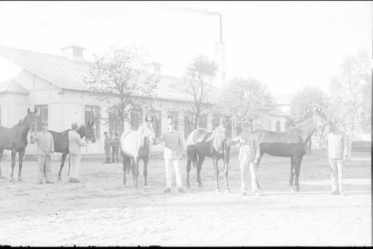 I väntan på hästbesiktning utanför matsalen.
