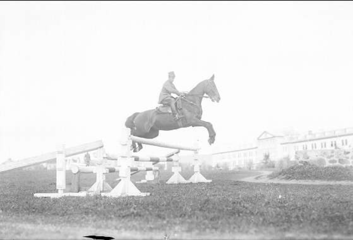 Inspektion i hoppning för kavalleriofficersaspirantskolan på fältet söder om kasern.