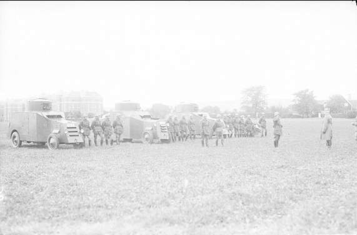 Kavalleriinspektören general Reinhold von Rosens slutinspektion och avsked av regementet. Här vid pansarbilskvadronen (pansarbil, försöksmodell).