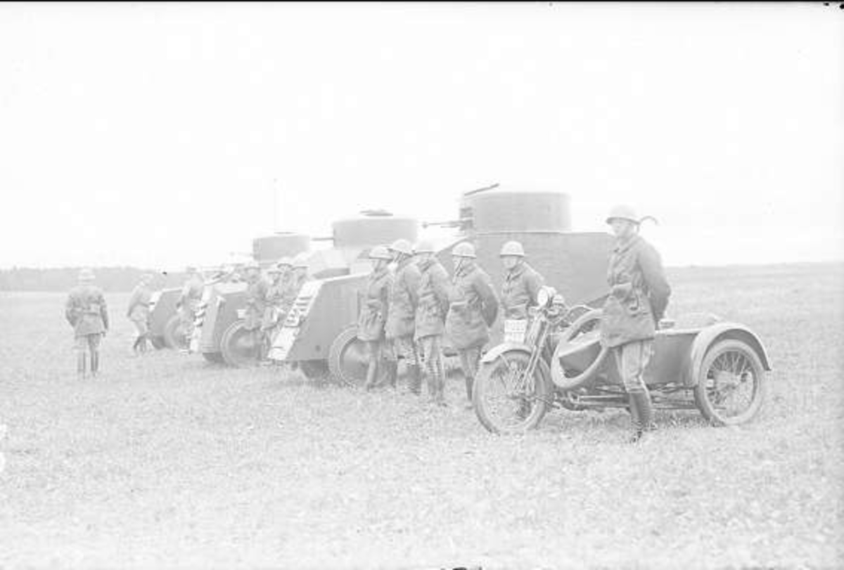 Kavalleriinspektören general Reinhold von Rosens slutinspektion och avsked av regementet. Här vid pansarbilskvadronen (pansarbil, försöksmodell).