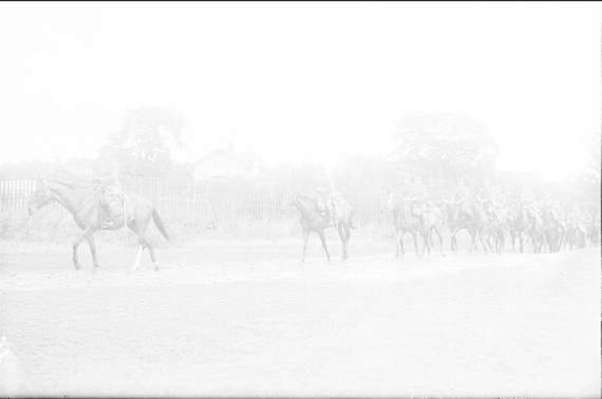 Aspirantskolan under inspektion av general Göran Gyllenstierna. Framför skolan skolchefen ryttmästare Harald Strömfelt och fanjunkare Sture Nilsson.
