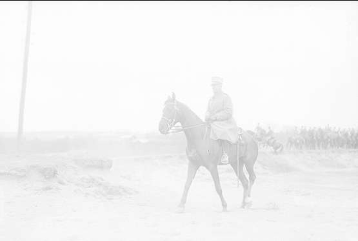 Ett inspekterande befäl. Aspirantskolan i bakgrunden.