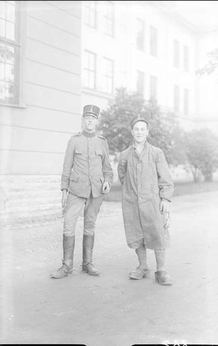 Två livhusarer - troligen hästskötare - i m/10 respektive stallrock.