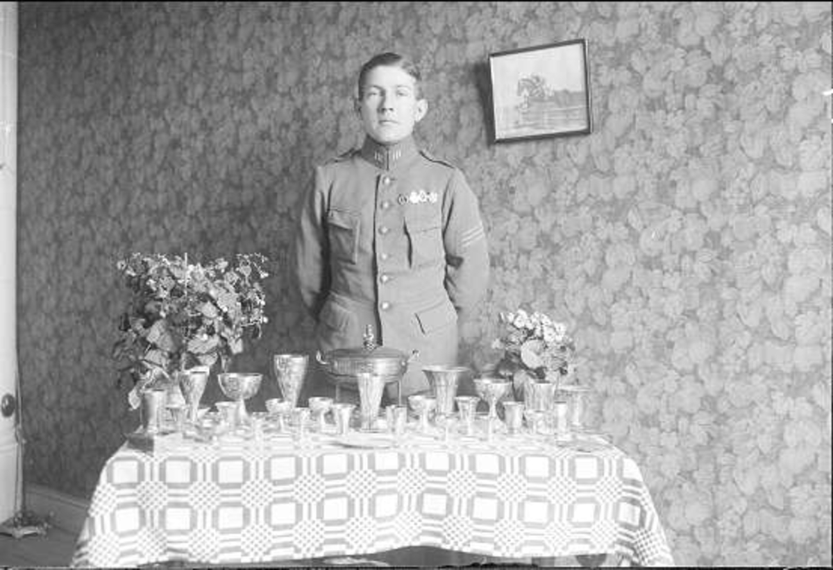Furir i m/23 vaktande prisbordet före prisutdelning.