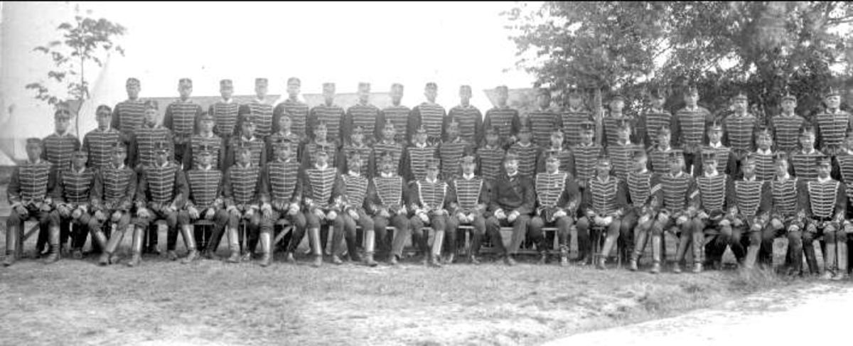 Beväringsmötet 1899 på Sanna Hed. Skvadronsbefäl: Löjtnant Lewenhaupt, fänrik Friedrichsén, fanjunkare C U Bergman.