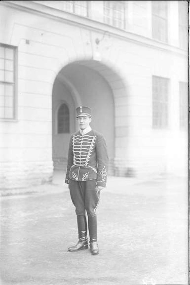 Livhusar i uniform m/1895 (m/ä) utanför valvet vid K 3
