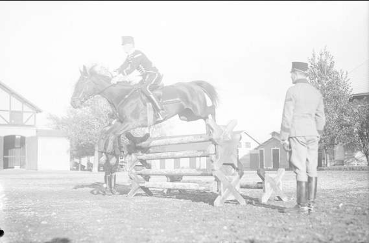 Träningshoppning på kaserngården söder skvadronsstallarna.