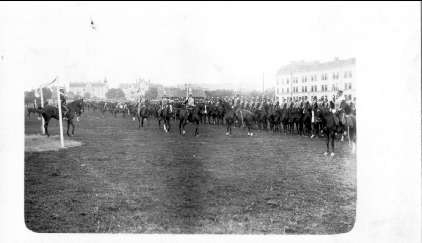 Överste C Rudenskiöld tar emot Kungliga livregementets husarer 21/8 1913