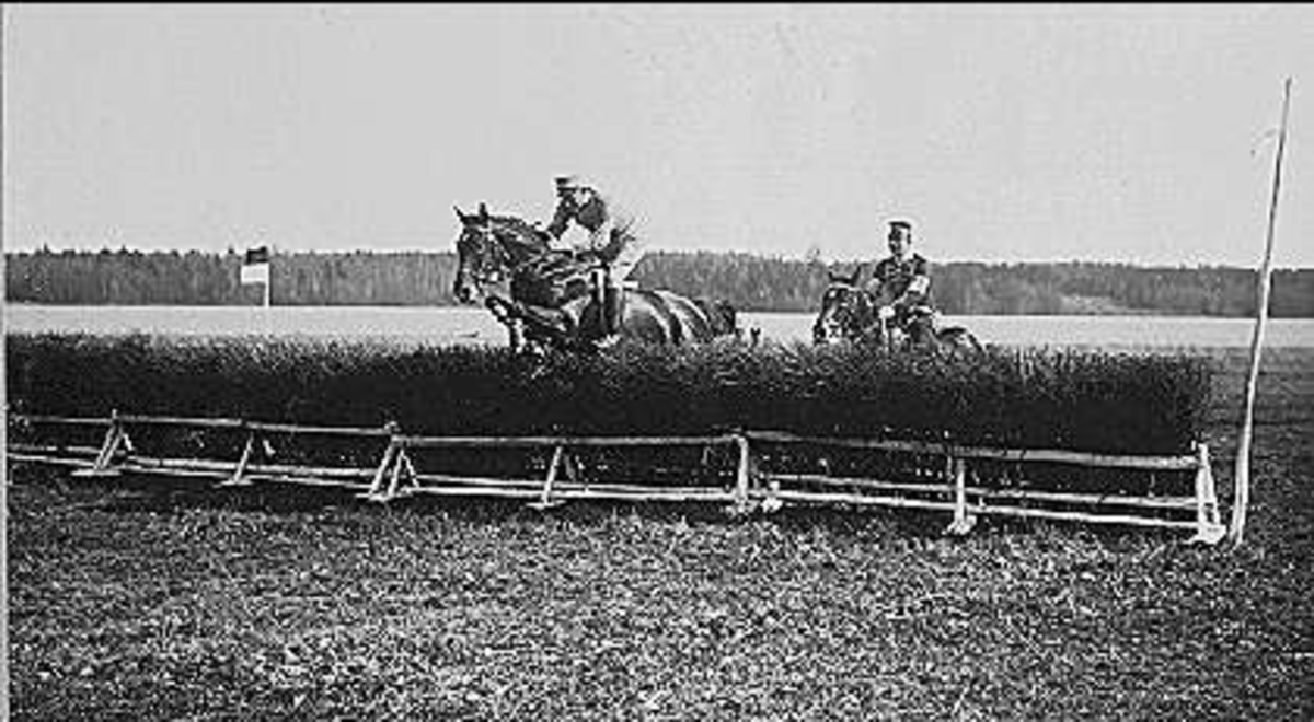 På Österängens kapplöpningsbana på Strömsholm. Upploppshäcken - sista hindret på raksträckan fram mot mål.