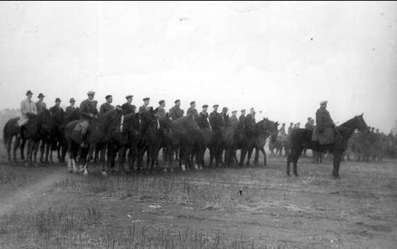 Fanj Malm framför ryttarsvadron 4. Dec 1945 i Skövde.