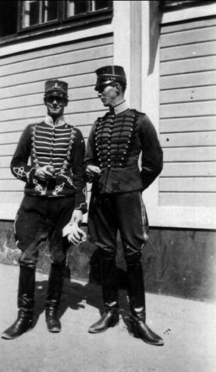 Nedanstående kavalleriofficerare avlade officersexamen på Karlberg 1923 och gick därefter ridskolan på Strömsholm 1924-25. Carl-Axel Stackelberg K 1, Sven Littorin K 3, Nils Frost K 4, Sven Axel Torén K 5, Carl Otto Smith K 6, Erik Wikland K 6. Paus i solen mellan två ridpass.