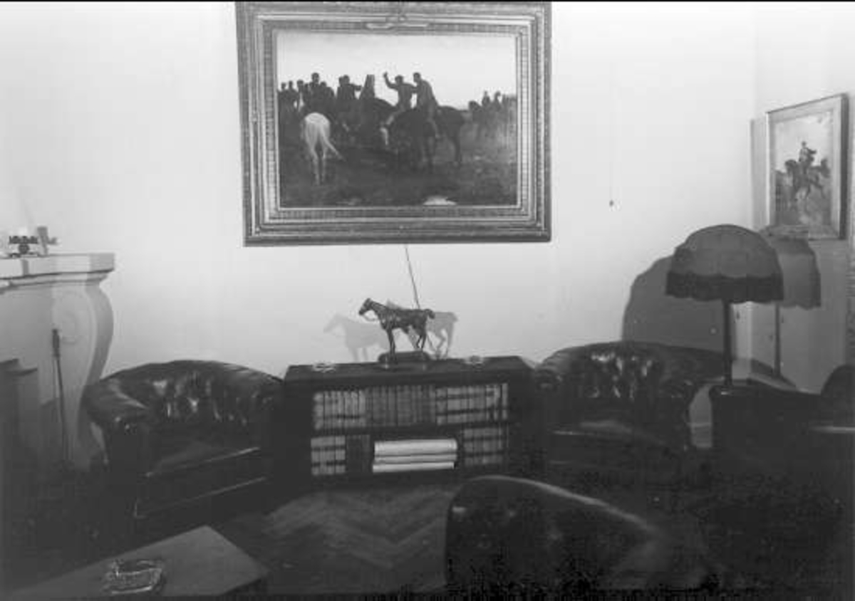 Brasrummet på officersmässen på K 3 i Skövde. Mitt på väggen Georg Arsenius berömda oljemålning "Vattning på Sanna hed".
