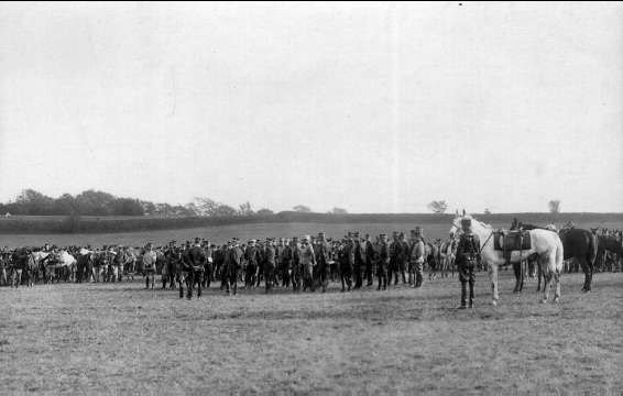 Strömsholm 1910-11. Officerare från olika kavalleriregementen. Längst till höger med vit häst regementstrumpetaren.