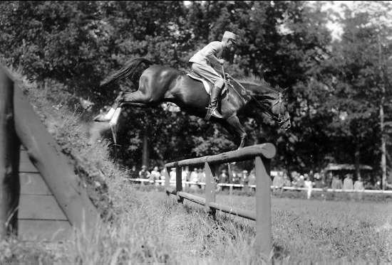 Strömsholm bank med efterföljande koppelräck - ett mycket svårt hinder som här klaras med elegans.