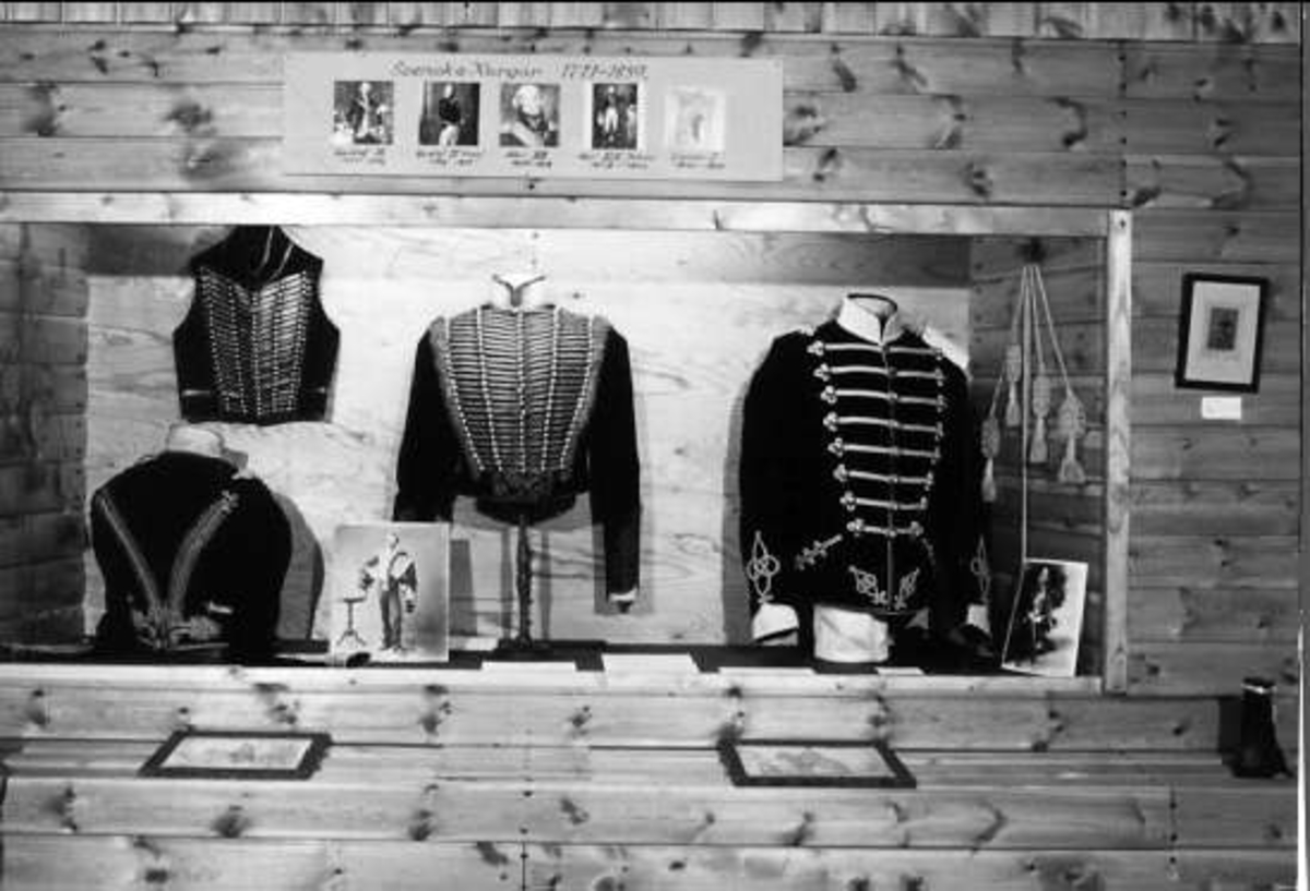 Titel: Monter med gamla uniformer i Livhusarmuseets Utnäslötrum på K 3 i Skövde.