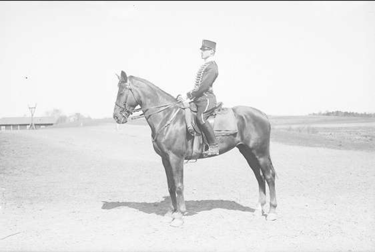 Aspirant på tilldelad stamhäst. Aspiranten iklädd regementets m/ä (K 3)