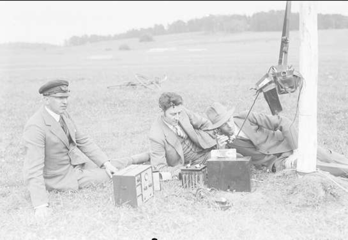 Sambandsförsök med olika signalapparater, bland annat 2 watts radio.