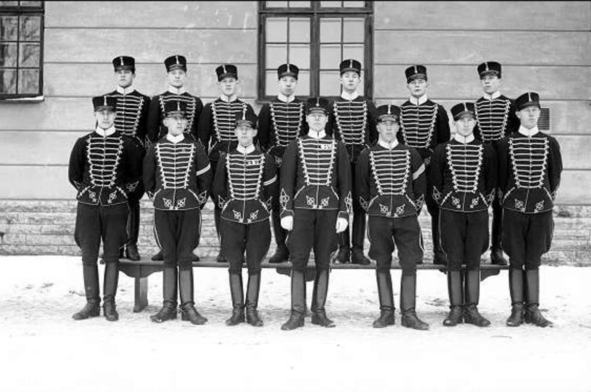 Avdelning ur 4. Skvadron. I mitten Erik Tiberg. Cirka 20 år senare expeditionsförvaltare på K3.