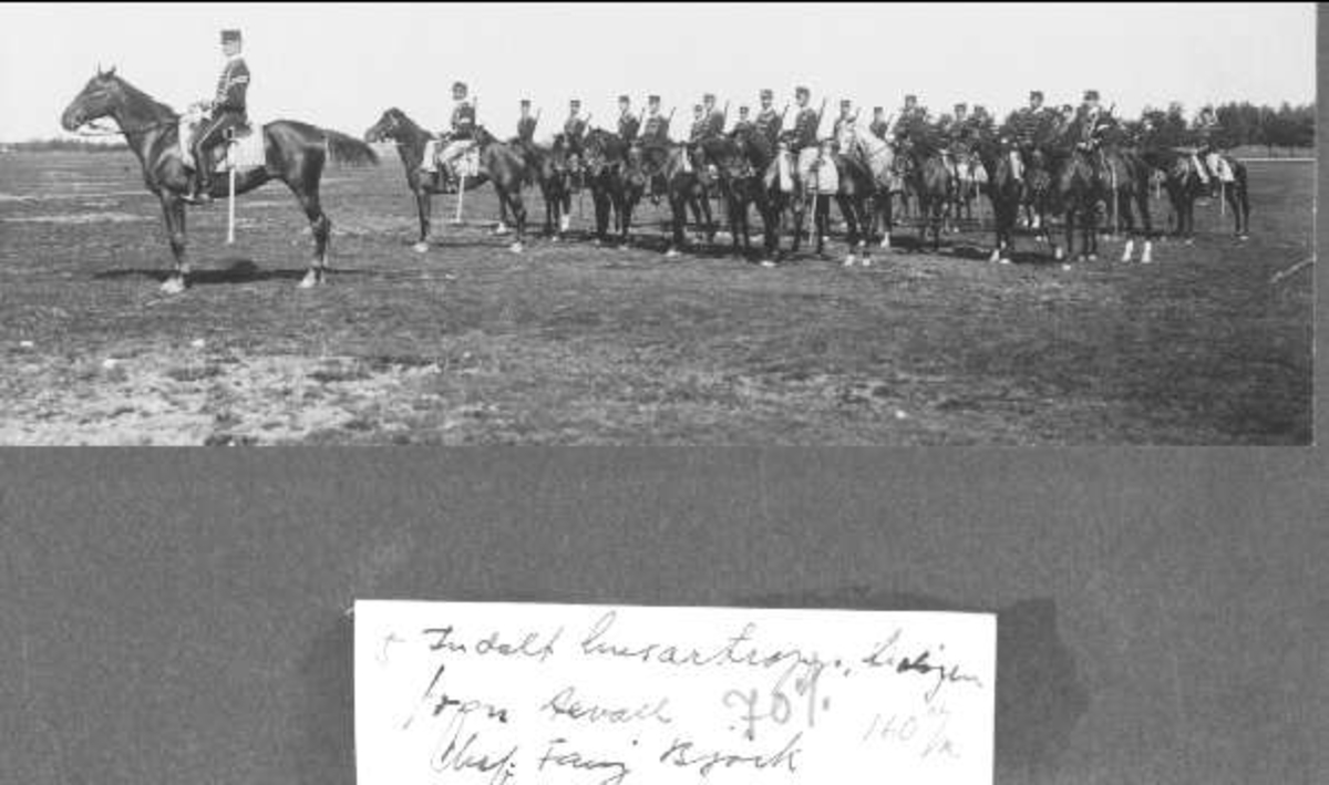 Indelt husartropp troligen från Axvall. Chef fanjunkare Björk.