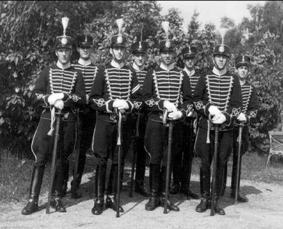 Manskap tillhörande regementets representation 6/6 1948 vid invigningen av Lifskvadronens minnessten i Fellingsbro.