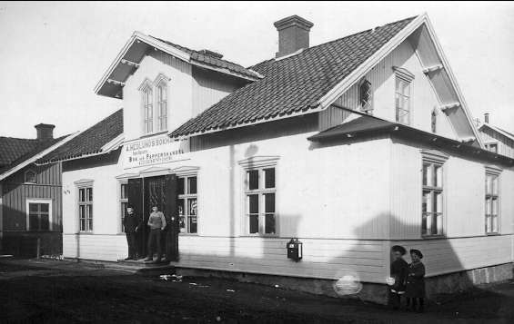 Hedlunds pappers- och bokhandel. Vykort taget omkr 1900. Förstoring 18,5 x 29 cm finns. Neg. finns. Se även bilaga till 51790.