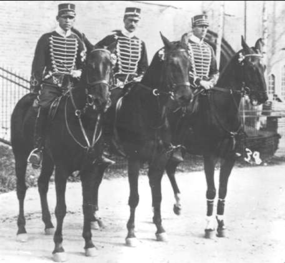 Livhusarernas segrande lag i dressyrtävling. Från vänster Fänrik Henrik Lagerkrantz, Ryttmästare Carl Bonde.