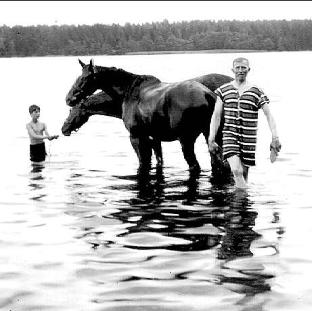 Vid Örlen i Fagersanna. Bad även för hästarna efter en varm marshdag.