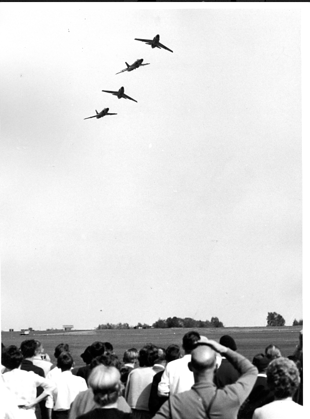 F6 Karlsborg. Flyguppvisning. "Masken". Albumet är en del av en donation från Karl-Axel Hansson, Karlsborg. Förteckning över hela donationen finns i albumet samt som Word-dokument.