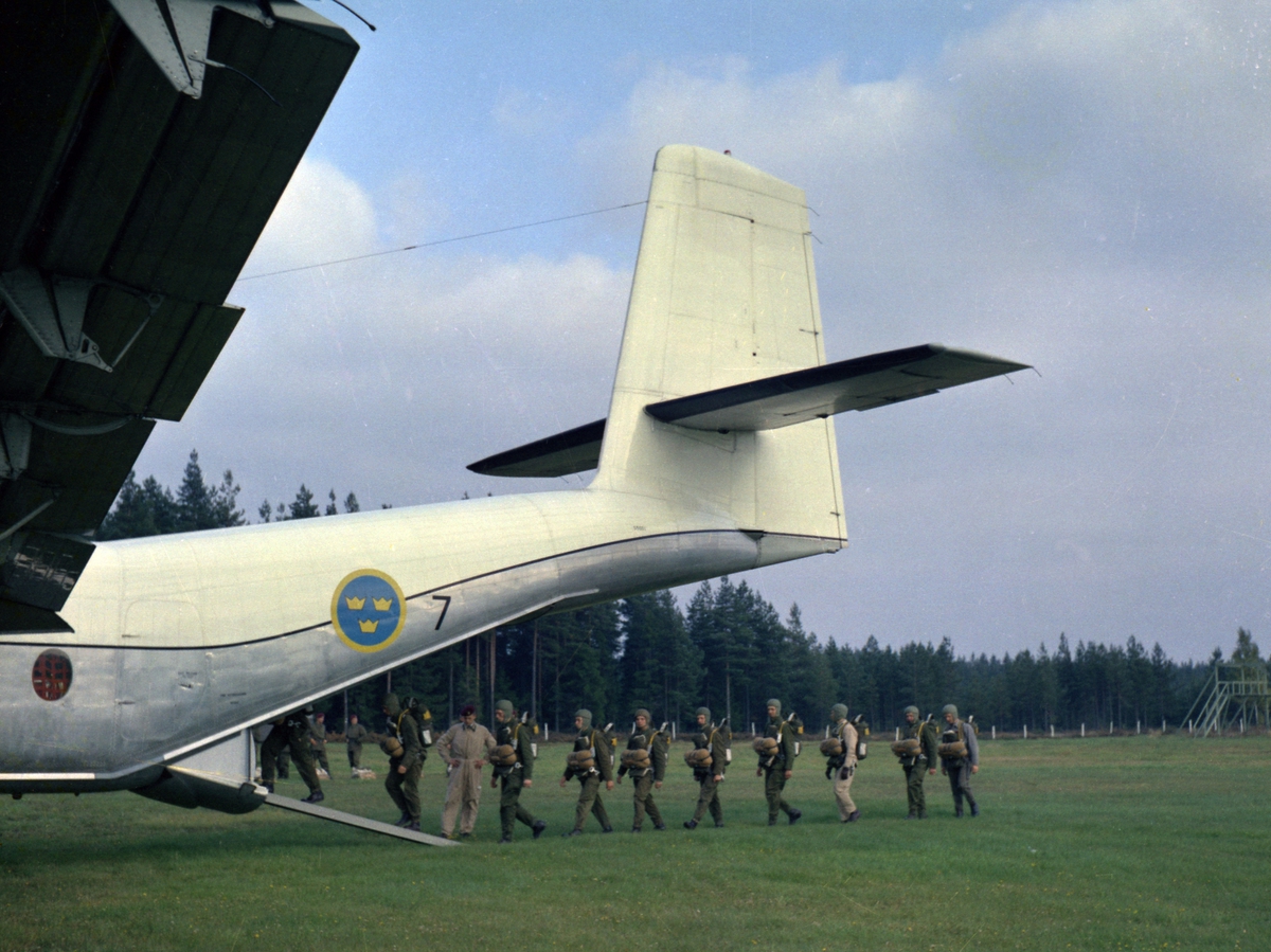 Titel: Fallskärmsjägarskolan i Karlsborg 1963.Planet lastas.