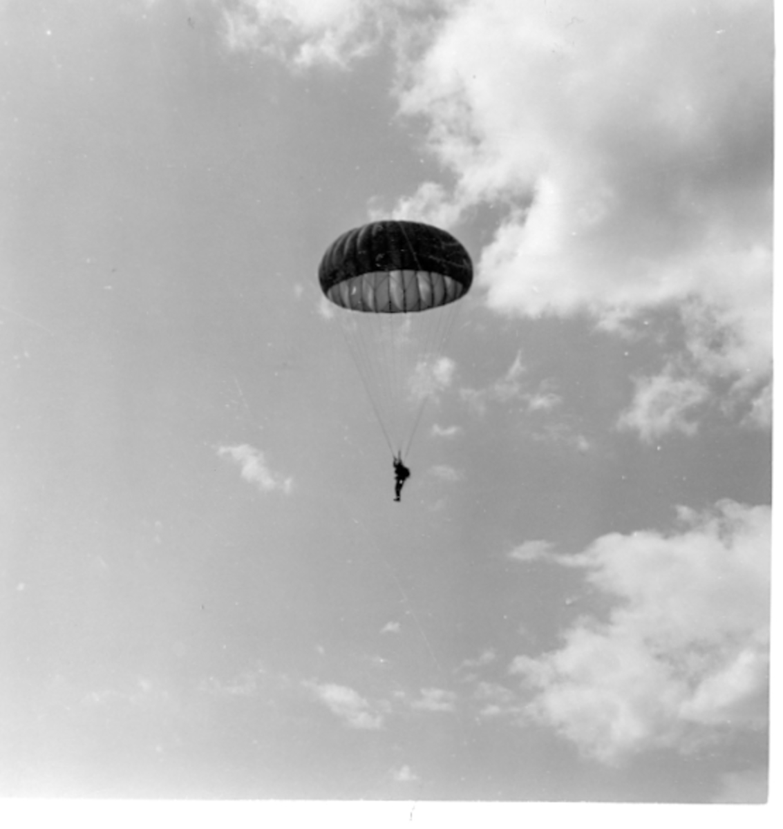 Fallskärmsjägarskolan Karlsborg 1959.Fallskärmshoppning.