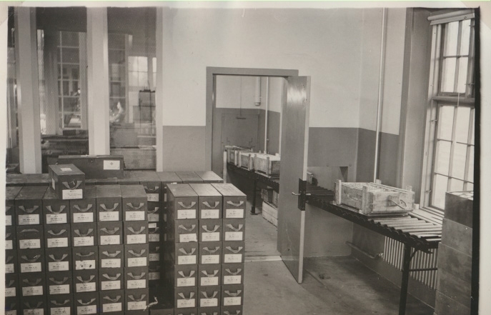 Ammunitionsfabriken i Karlsborg 1920-tal. Laboratoriet, där ett tändrör tillverkas på 50 sekunder.