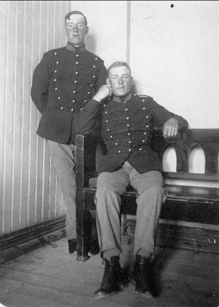 A 10 Karlsborg, Karl Verner Gustavsson och en rekrytkamrat år 1921.