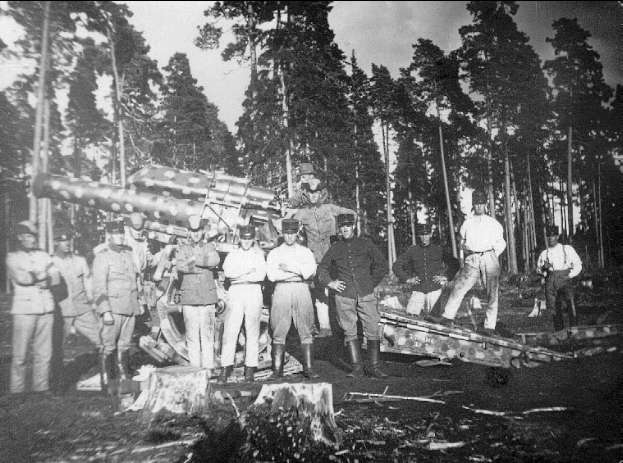Militärer på skjutövning med en haubits. Kortet är en gåva av Ulla Pettersson.