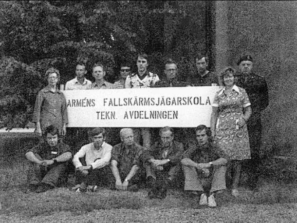 Fästningen, personal på arméns fallskärmsjägarskola tekn avd. Gåva av Roger Agartsson. För namn se bilaga till 56274.