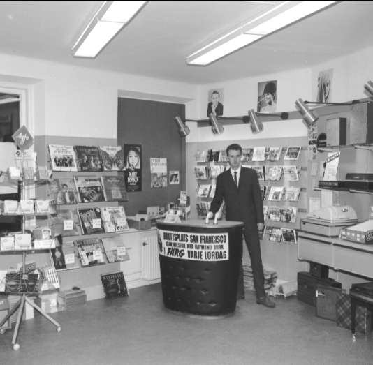 Interiörbild från - Strandbergs Radio och TV - Karlsborg, 1968. Endast neg finns.