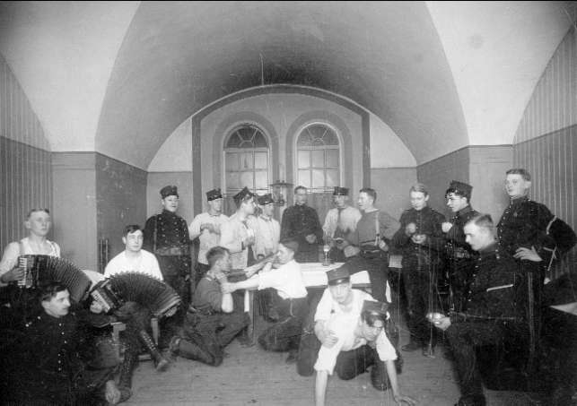 Art, logementsinteriör. Gåva av Harry Liljegren. Endast förstoring 26 x 32 cm. Fotot finns vid utställningen om Karlsborgsvisan i fästningssalen.