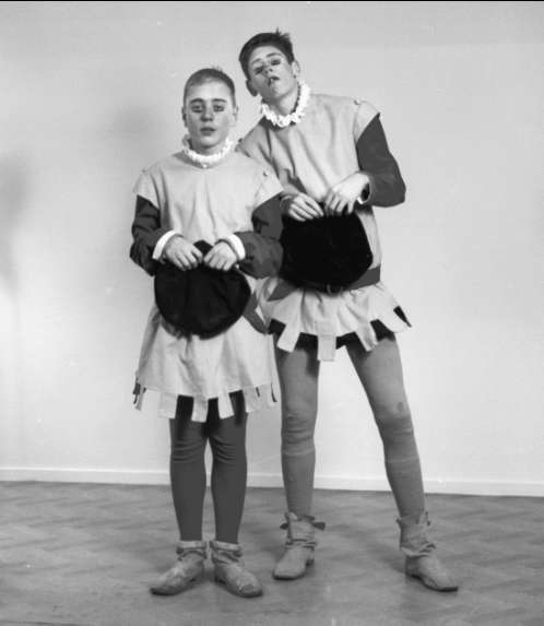 Titel: Karlsborg. Fotografier från teateruppsättningen av "Så tuktas en argbigga", 1958. Endast neg finns.