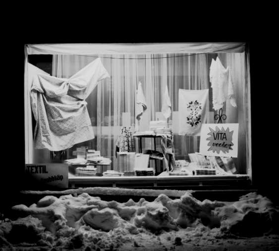 Skyltfönster hos Eklunds textilvaruhus, 1969. Endast neg finns.