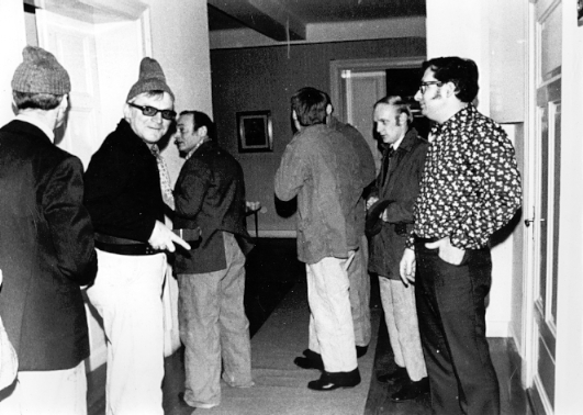 Underofficerare vid festligt tillfälle på mässen, 1960-tal. Från höger: Lars Carlsson, Börje Lundin, 5:a Olle Edh, 6:a Sten Eriksson.