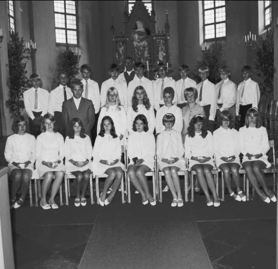Konfirmandgrupp, Undenäs kyrka, 18/8 1968. Konfirmandlärare: kyrkoherde Per-Olof Lindholm, Ljung. Deltagarlista finns i arkivet. Neg finns.