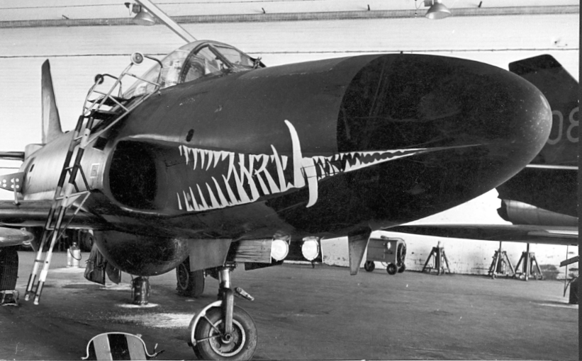 F6 Karlsborg. A32 "Hajen". Ritad av Anders Nylén. Albumet är en del av en donation från Karl-Axel Hansson, Karlsborg. Förteckning över hela donationen finns i albumet samt som Word-dokument.