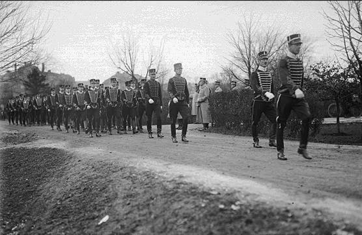 Förbimarsch framför valvet K 3 kasern.