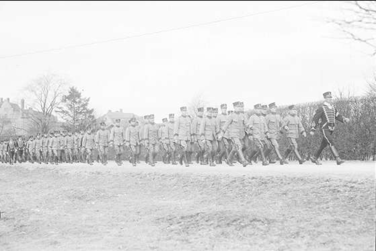Förbimarsch efter krigsmans erinran i exercishuset (Lundasalen).