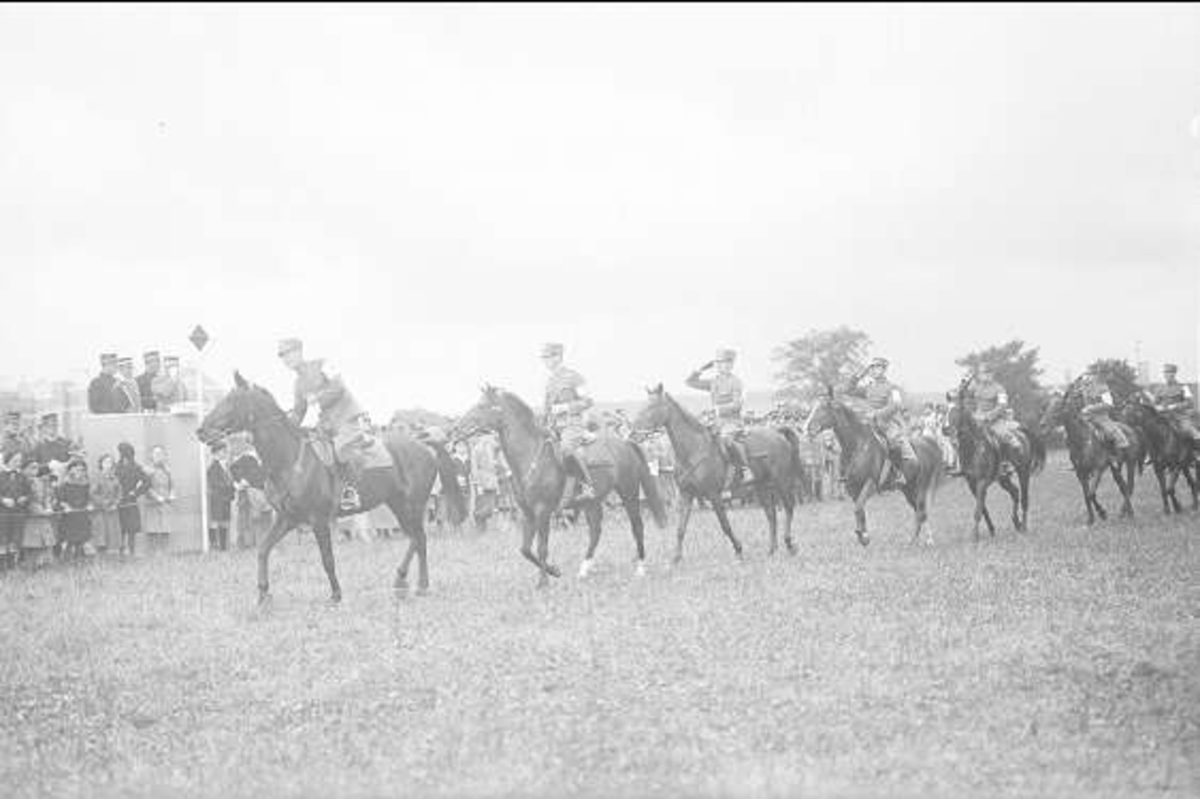 Löpning för officersaspiranter. Hälsning på domaren före nedgalopp till start.